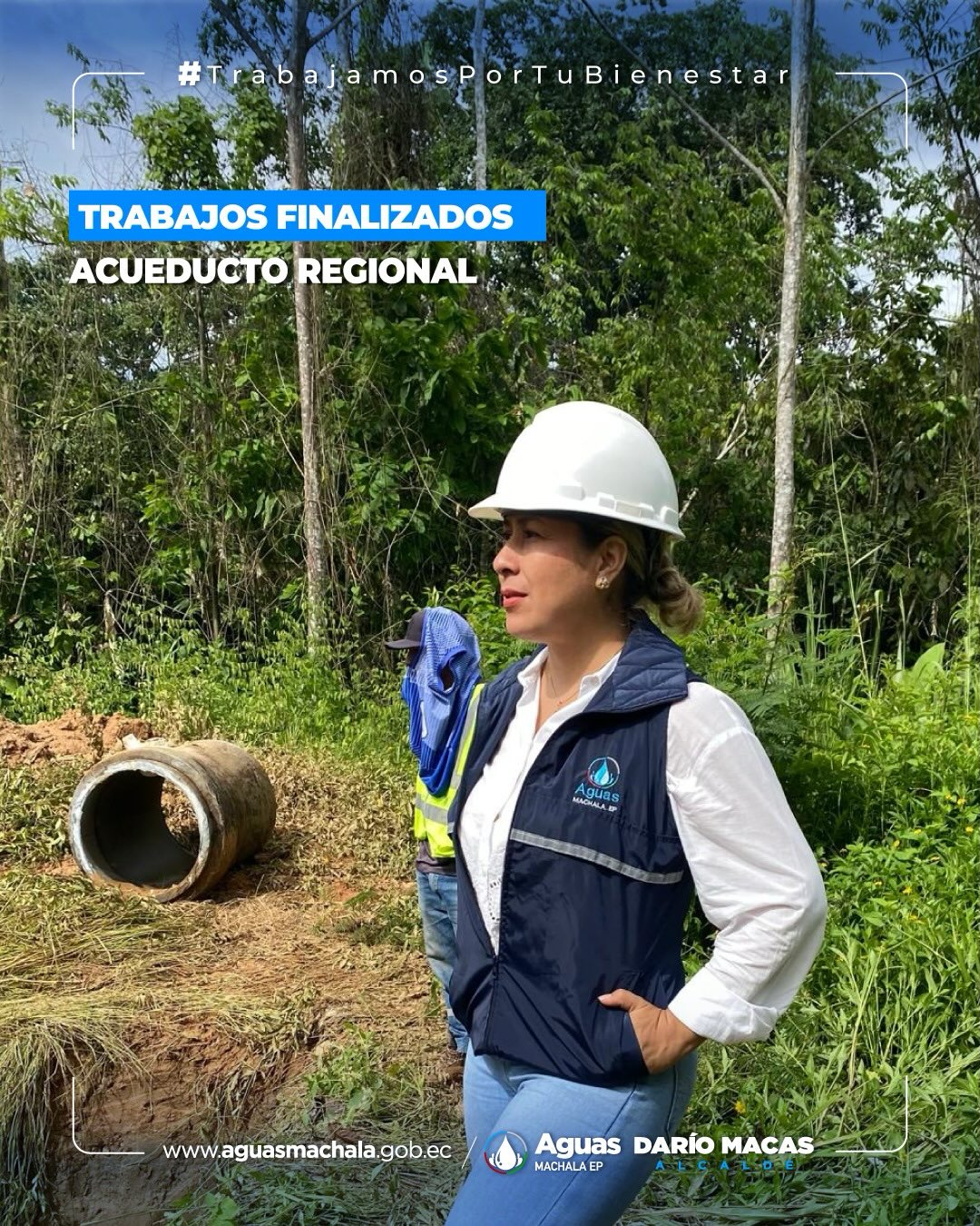 Los trabajos de reparación en el acueducto regional han finalizado con éxito, luego de una jornada intensa. El restablecimiento será progresivo: desde la Planta de Tratamiento La Esperanza, cantón Pasaje hasta Machala, el agua tarda aproximadamente 24 horas en recorrer el sistema, estabilizar reservas y presiones. Agradecemos su paciencia y comprensión. Mientras el servicio se normaliza, el plan de contingencia continúa activo con abastecimiento mediante tanqueros en distintos sectores de La Gran Ciudad. #trabajamosportubienestar