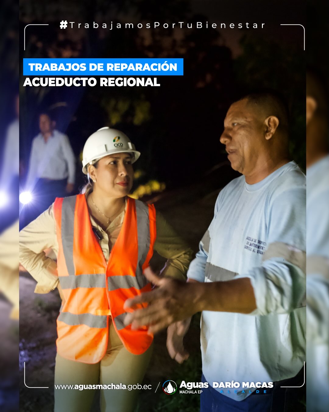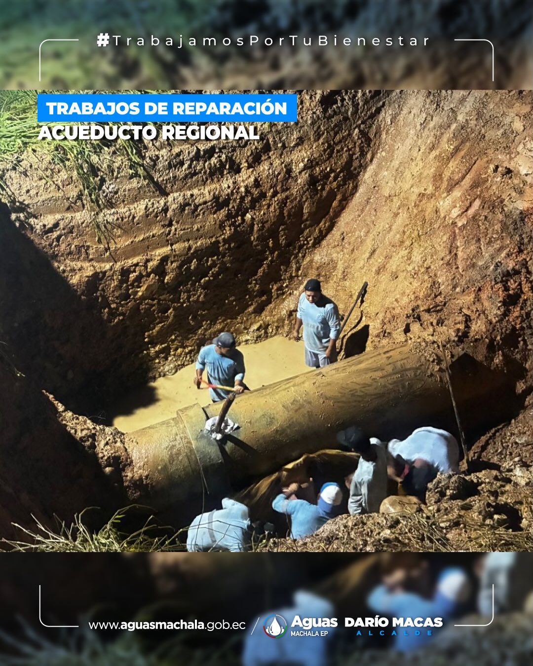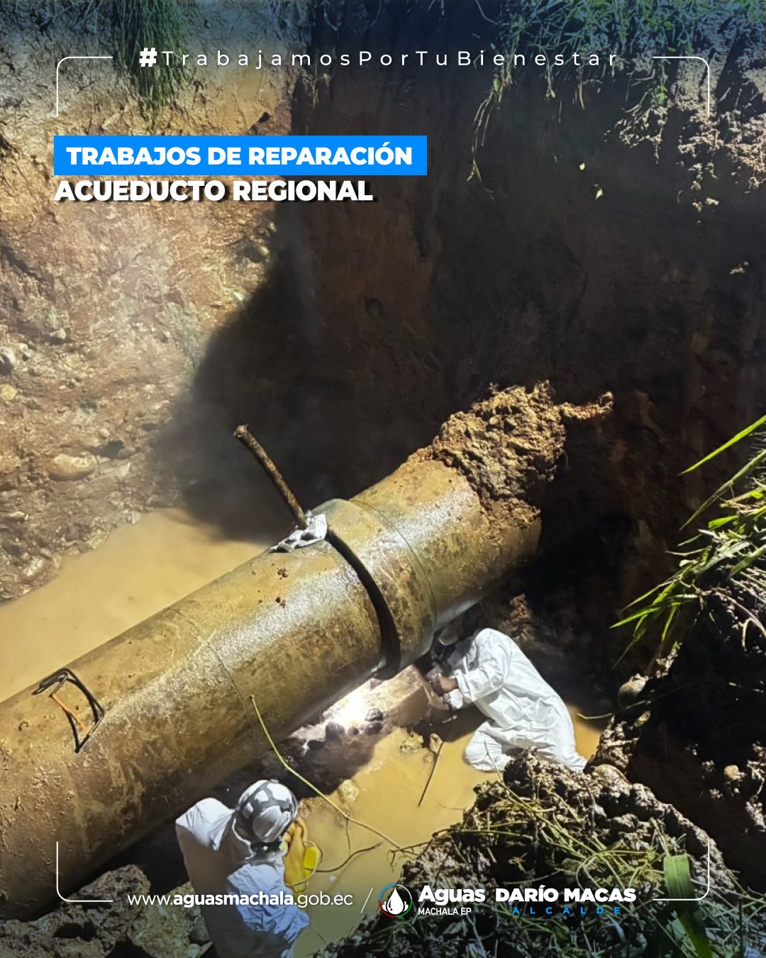 Desde el tramo 2 del acueducto regional, sector Rosa de Oro, equipos de Aguas Machala EP, junto a la Mancomunidad La Esperanza, ejecutan la reparación y reposición de la tubería afectada. La intervención es inmediata, con personal, maquinaria y supervisión técnica en territorio. Seguimos firmes para garantizar la continuidad y estabilidad del servicio de agua potable. #trabajamosportubienestar #daríomacasalcalde